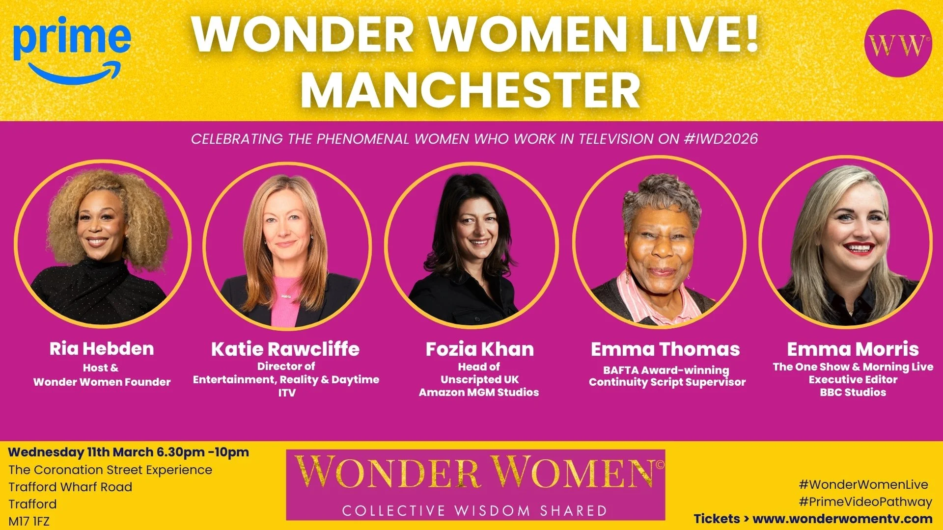 Wonder Women Live! Manchester will take place on Wednesday 11th March as part of a commitment to championing the talent and opportunities in the Nations and Regions. Complimentary tickets for this event have generously been provided by our official Headline sponsor Prime Video Pathway.